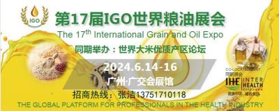 2024第17届世界粮油博览会 时间:2024年6月14-16日 地址: 广交会展馆C区(广州市海珠区新港东路980号) 展会咨询:张洁13751710118(V信同步)